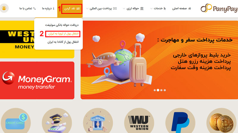 مراحل انتقال و نقد کردن وجه دریافتی از اروپا با پانی ‌پی