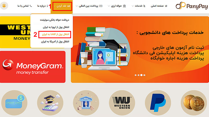روش‌های انتقال پول از کانادا به ایران در پانی پی